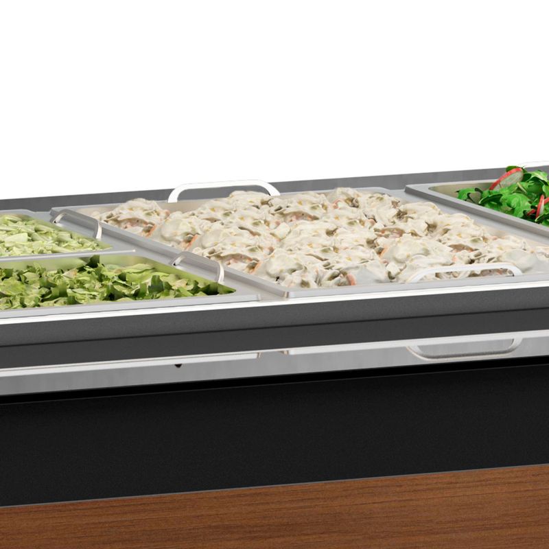 Mesa RefrigeradaTemperatura: 0° a +7°CBase: Aço pré-pintado, saia e passagem de ar em aço revestidoTanque: Aço Inox 304Protetor salivar com ajuste de posição em vidro temperadoOpcional: Cubas com puxadores e tampasTampo em vidro com serigrafiaEquipamento(s) certificado(s) conforme Portaria Inmetro nº 148/2022Produto destinado para uso comercial* Imagens meramente ilustrativas. Imagens e informações sujeitas a alterações sem aviso prévio.** Cores de acabamento e materiais sujeitos a variação de acordo com o lote de produção e/ou entre os materiais que compõem o produto (ex.: chapa, plástico,madeiras e etc.)