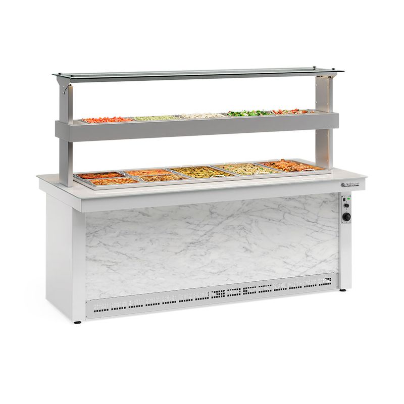Mesa Térmica/Refrigerada Linha Buffet VitraTemperatura: Aquecimento: +30° a +65°CRefrigeração: 0° a +7°CBase: Aço pré-pintado, saia e passagem de ar em aço revestidoTanque: Aço Inox 304Protetor salivar com ajuste de posição em vidro temperadoOpcional: Cubas com puxadores e tampasTampo em vidro com serigrafiaEquipamento(s) certificado(s) conforme Portaria Inmetro nº 148/2022Produto destinado para uso comercial* Imagens meramente ilustrativas. Imagens e informações sujeitas a alterações sem aviso prévio.** Cores de acabamento e materiais sujeitos a variação de acordo com o lote de produção e/ou entre os materiais que compõem o produto (ex.: chapa, plástico,madeiras e etc.)