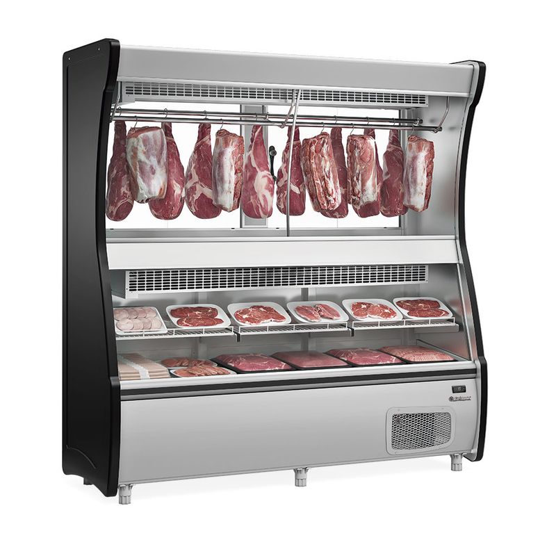 Balcão Frigorífico AçougueTriplexTemperatura: 0 a +7CAço pré-pintado bancoAço pré-pintado cinza, cabeceira plástica PSAI (Preto)Tendal duplo de alumínio com ganchosTendal duplo de alumínio com ganchosPrateleira: 1 nível, aramada, regulável e inclinávelBandejas em aço inox 430: 12 unidades (6x 515x303x30mm + 6x 370x344x30mm), acompanham o produtoVidros sujeitos a condensação da umidade do arEquipamento(s) certificado(s) conforme Portaria Inmetro nº 148/2022Produto destinado para uso comercial* Imagens meramente ilustrativas. Imagens e informações sujeitas a alterações sem aviso prévio. ** Cores de acabamento e materiais sujeitos a variação de acordo com o lote de produção e/ou entre os materiais que compõem o produto (ex.: chapa, plástico,madeiras e etc.)