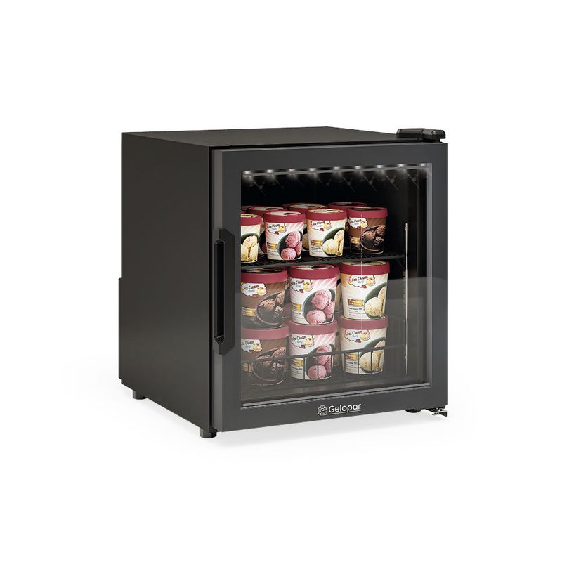 Refrigerador VerticalTemperatura: Congelados -15° a -20°C / Resfriados 0º a +7ºCAço pré-pintado pretoAço pré-pintado pretoFechamento automáticoPorta com aquecimentoPrateleiras aramadas1 nível + cesto aramadoVidros sujeitos a condensação da umidade do ar