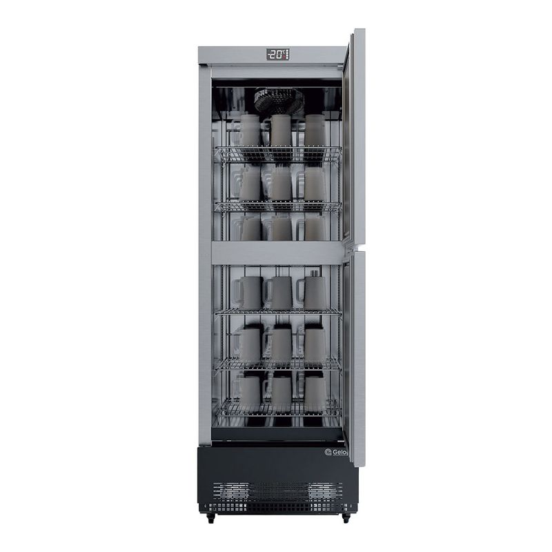 Congelador para Canecas de ChoppTemperatura: -12° a -26°CAço inox 430Aço Revestido Tipo InoxFechamento automáticoPrateleiras aramadas5 níveis + Estrado em aço inoxCapacidade para 210 canecas de 355ml ou 450 copos tulipa 200ml (Capacidade pode variar de acordo com o modelo da caneca / copo.)Fechamento automáticoEquipamento(s) certificado(s) conforme Portaria Inmetro nº 148/2022Produto destinado para uso comercial* Imagens meramente ilustrativas. Imagens e informações sujeitas a alterações sem aviso prévio. ** Cores de acabamento e materiais sujeitos a variação de acordo com o lote de produção e/ou entre os materiais que compõem o produto (ex.: chapa, plástico,madeiras e etc.)