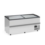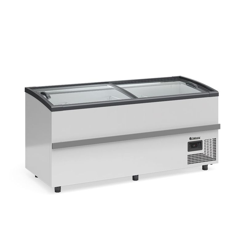 Expositor Ilha Supermercado - Dupla AçãoTemperatura: Congelados -14 a -20C / Resfriados 0 a +7CAço pré-pintado brancoAço pré-pintado brancoDivisórias internas aramadasOpcional: Plataforma aramada para elevação de mercadoriaVidros sujeitos a condensação da umidade do ar
