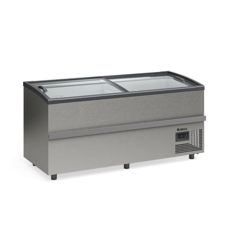 Expositor Ilha Supermercado - Dupla AçãoTemperatura: Congelados -14 a -20C / Resfriados 0 a +7CAço pré-pintado brancoAço revestido Tipo InoxDivisórias internas aramadasOpcional: Plataforma aramada para elevação de mercadoriaVidros sujeitos a condensação da umidade do ar