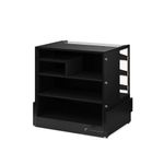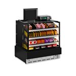 Vitrine Neutra Aberta / CaixaLinha Gourmet ConveniênciaBase acoplada em aço pré-pintado preto, com passagem de ar em aço revestido aço inox 304 escovadoPrateleiras em aço-pré pintadoPrateleiras traseiras: 2 níveis em aço pré-pintado3 níveis reguláveis e inclináveis, em aço pré-pintadoNicho para instalação de gaveta automáticaDepósito na parte traseira para embalagens e suprimentos1 ponto de elétrica para tomadaGaveta automática não acompanha o produto